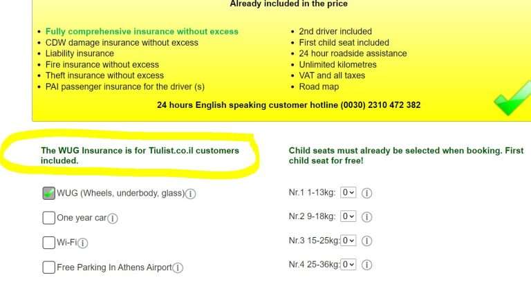 עוד אופציה: אפשר להשוות הצעות באמצעות הפלטפורמה של Discover Cars זהו אתר אמין מאוד להזמנת רכב שכור, תוכלו להשוות עשרות חברות בינלאומיות ומקומיות, כולל פרמטר של ביטוח מלא / ביטול השתתפות עצמית וכו'.